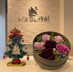 患者様からクリスマスに頂いた、石鹸素材でできたお花のアレンジ。 香りも楽しむことができるので、リラックスできます。