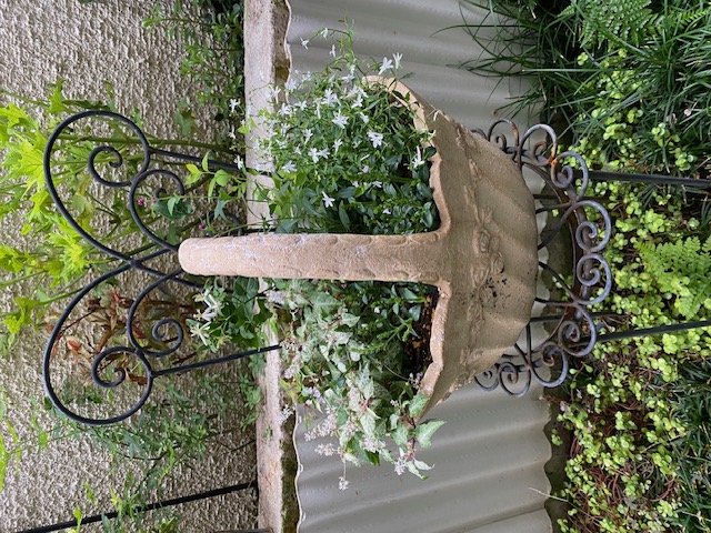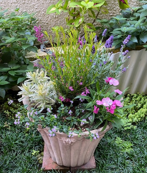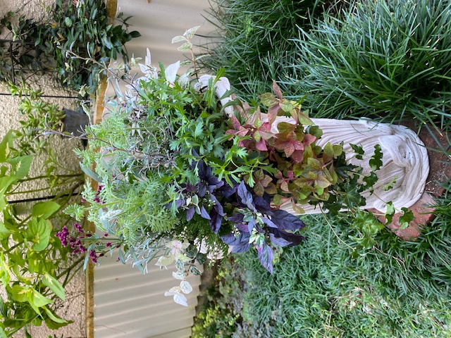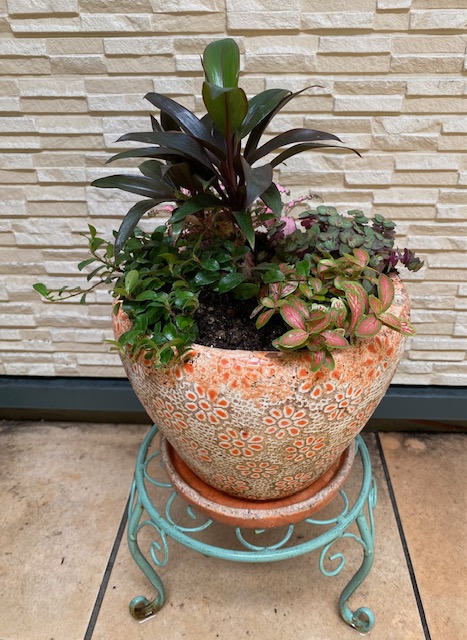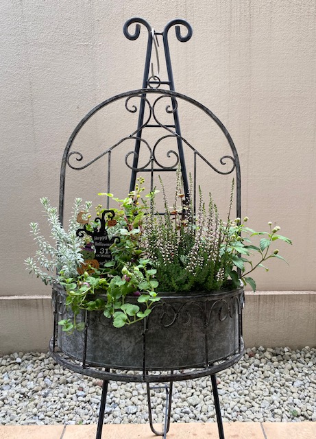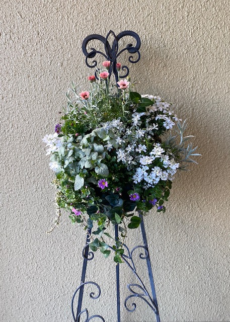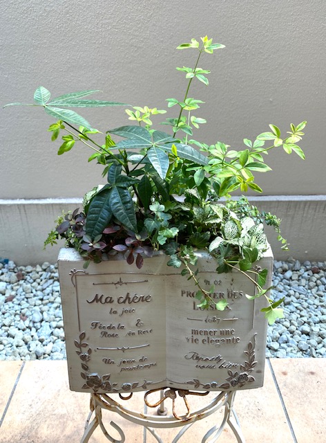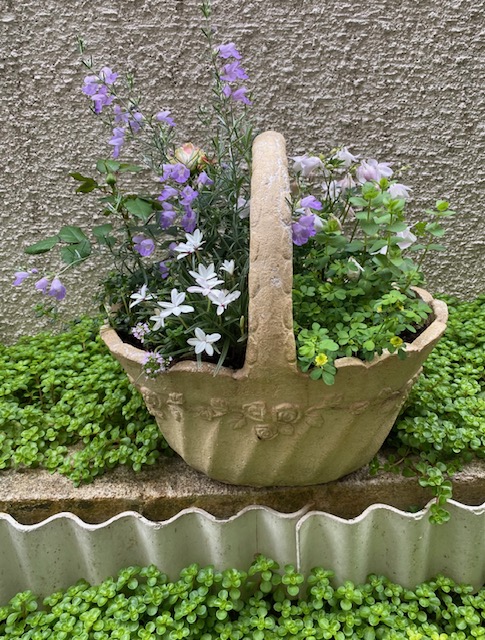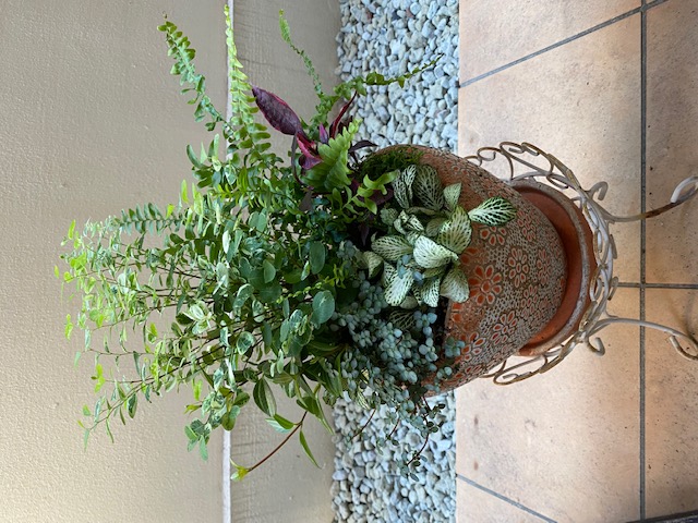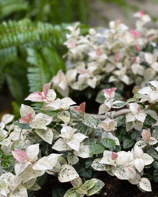 夏の庭に、うっすらと雪をのせたような葉姿を楽しめる初雪カズラ。